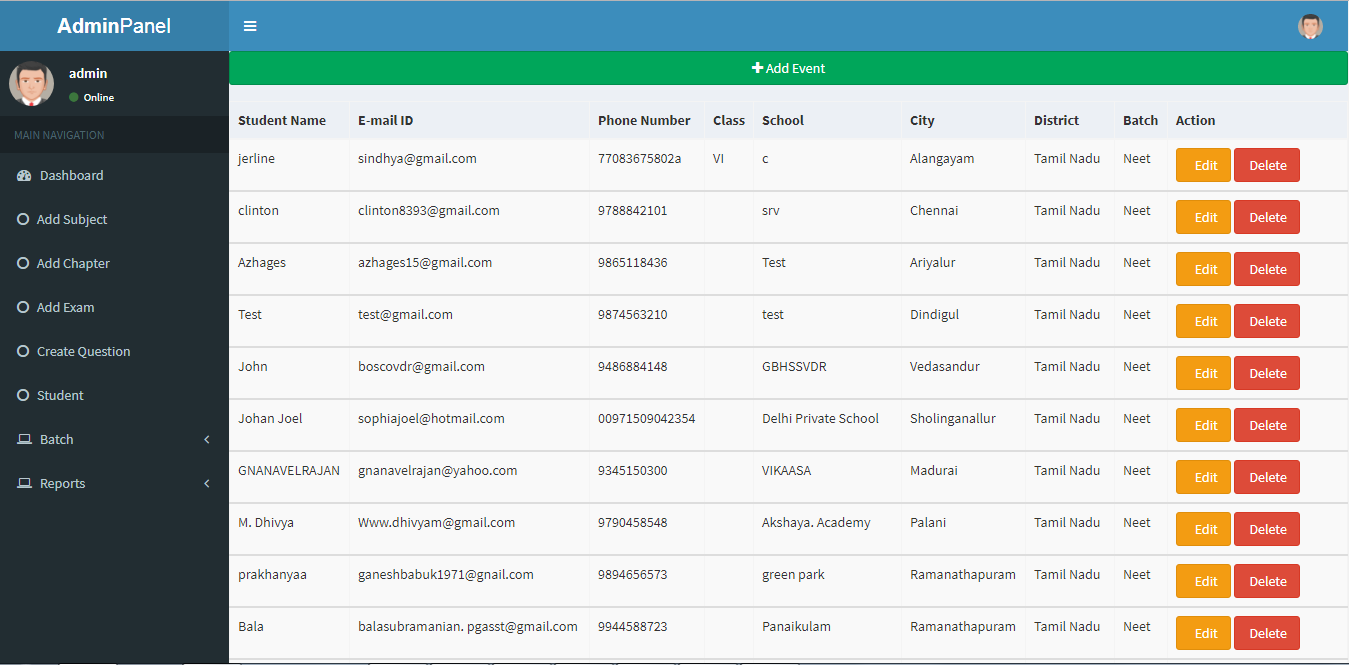 - Synchronization of online test on Web and Mobile/Tablet which is accessible 24/7